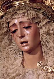 La imagenofrece un llanto que sobrecoge, con el aliento entrecortado, en suprema congoja por el intenso dolor que le produce el momento que representa.